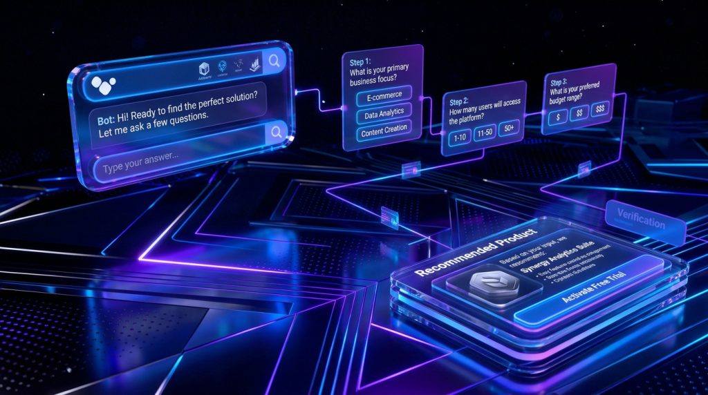 AI w e-commerce zwiększa sprzedaż, ponieważ pomaga użytkownikowi wybrać właściwy produkt w czasie rzeczywistym. Zamiast przeszukiwać sklep, klient odpowiada na kilka pytań i otrzymuje dopasowaną rekomendację, co znacząco zwiększa konwersję.